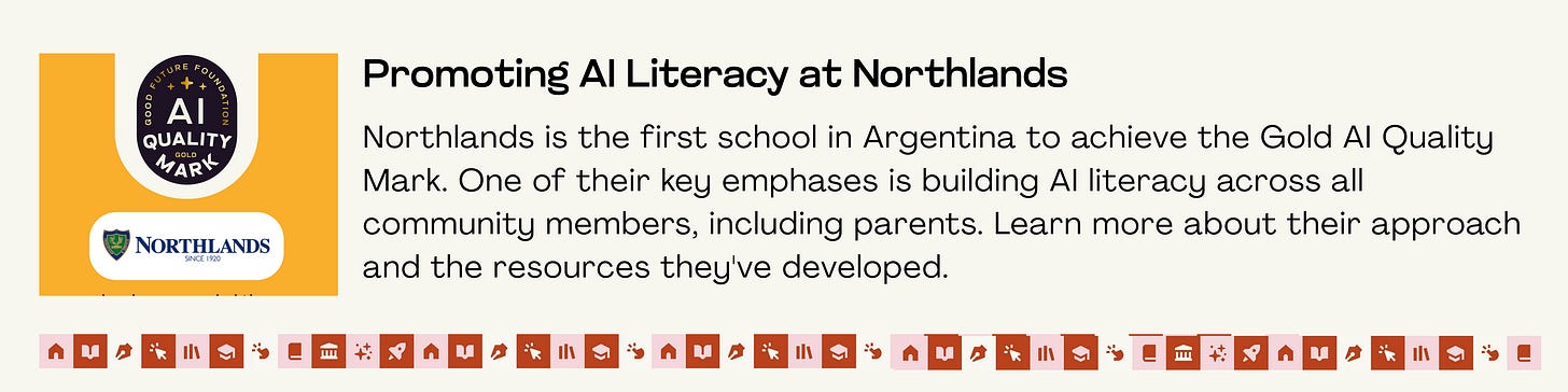 This month, we’re featuring Northlands School in Argentina, which recently received the Gold AI Quality Mark. Jennifer and Florencia, who are leading AI conversations at their school, share their approach and the resources they’ve developed. If your school is just beginning to navigate this space, you’ll find some inspiration in their work. Learn more from their insights below: