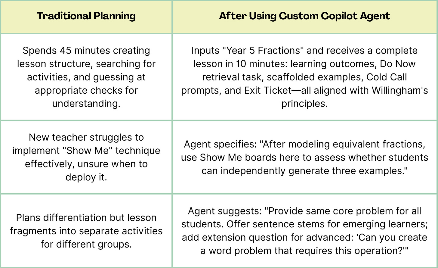 Teachers use a custom Copilot agent to design lessons aligned with cognitive science