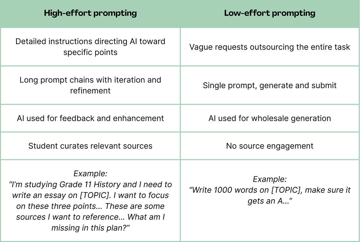 In my own practice at the Hong Kong Academy for Gifted Education, we have used student prompts to analyse learning. The difference between high-effort and low-effort prompting is immediately visible—it takes very little training for teachers to spot it.